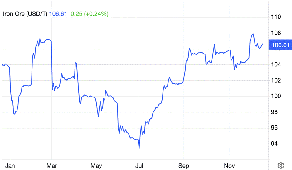 Bem, o tempo passou e Simandou inclusive realizou seu primeiro embarque para a China no início de dezembro, mas nada disso abalou os preços do minério, que têm mostrado força e se sustentando acima dos US$ 100 a tonelada.