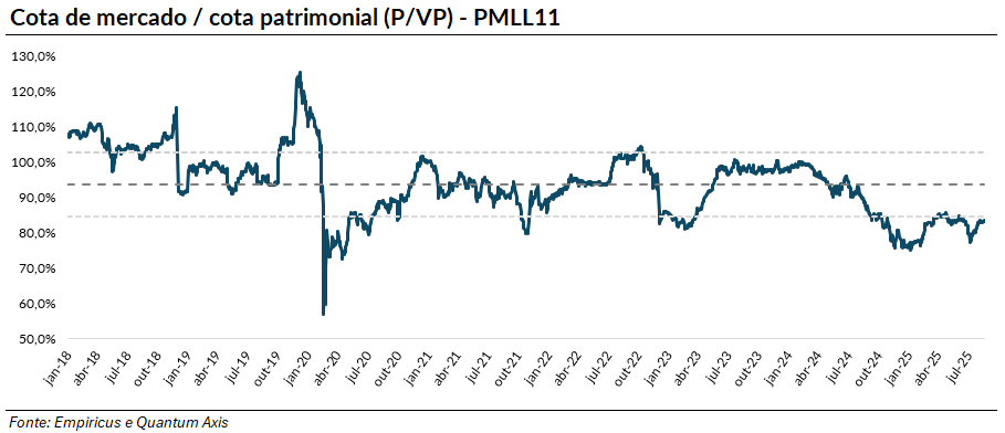 Entre os fatores que justificam a presença do PMLL11 nesta coluna, destaco o desconto relevante das cotas em relação ao seu valor patrimonial, além do nível atual de cap rate. Ambos os indicadores se mostram acima da média quando comparados a outros FIIs do segmento de shopping centers, reforçando a atratividade relativa do fundo.