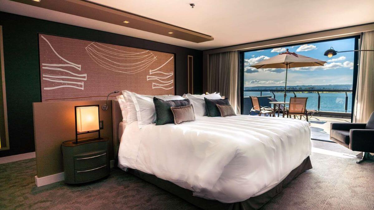 Os quartos contam com varandas privativas, banheira, minibar, ar-condicionado, Wi-Fi de alta velocidade e serviço 24 horas. O hotel também abriga salas de reunião, auditórios e espaços para eventos com capacidade para até 1.500 pessoas.
