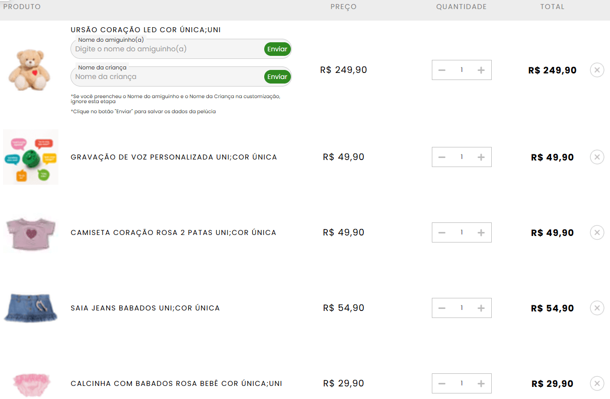 O Seu Dinheiro chegou a simular a compra de um ursinho de pelúcia da marca, com tudo o que tinha direito, incluindo uma tiara de brilhos e um skate cor-de-rosa. Nestas condições, o brinquedo sairia pela bagatela de R$ 689.
