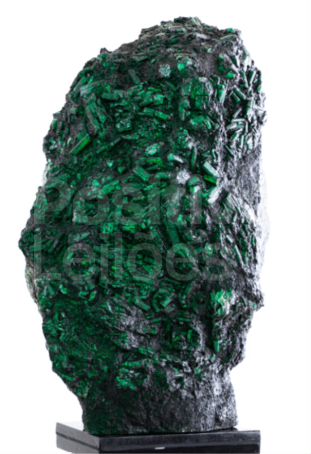 O formato da pedra, tecnicamente chamado de canga, mantém a esmeralda em estado bruto, com seus cristais ainda presos à rocha matriz. É um tipo de formação que costuma atrair colecionadores, museus e investidores, mais do que a indústria joalheira.