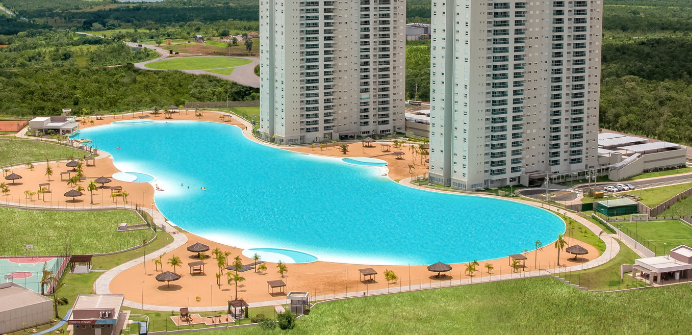 A lagoa artificial brasileira foi projetada pela empresa Crystal Lagoons, responsável por piscinas do tamanho de 17 campos de futebol