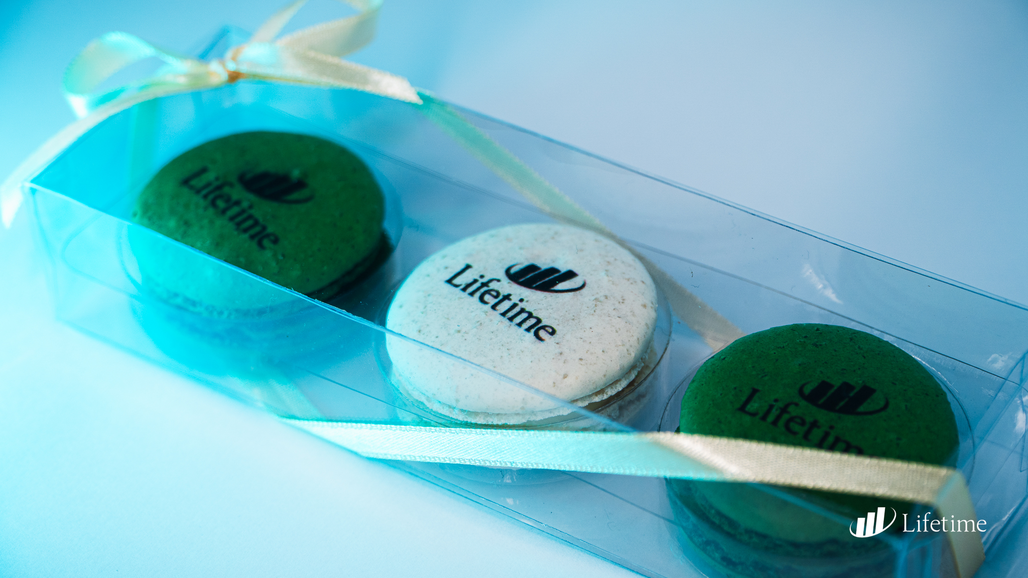 O primeiro presente é entregue após a primeira reunião com um potencial cliente. “É um agradecimento por terem ido a primeira vez para a Lifetime, ou por terem nos recebido pela primeira vez e nos dado essa abertura”, explica Mayra. Geralmente, esse primeiro presente é um trio de macarons, biscoito francês fino e delicado com recheio cremoso.
