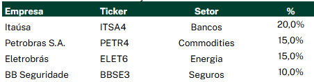 - Carteira de ações equilibrada entre geração de caixa e valorização;