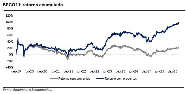 Em geral, estimamos uma geração de renda interessante de 9,3% para os próximos 12 meses para o BRCO11, apoiada pela boa ocupação dos seus ativos e pela distribuição de ganho de capital de operação recente.