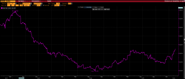 Depois de anos de volatilidade irreconhecivelmente baixa na bolsa, os fatores Donald Trump e fluxo gringo parecem finalmente estar quebrando essa dinâmica para os ativos brasileiros — e olha que não chegamos nos cortes da Selic e nas eleições ainda.