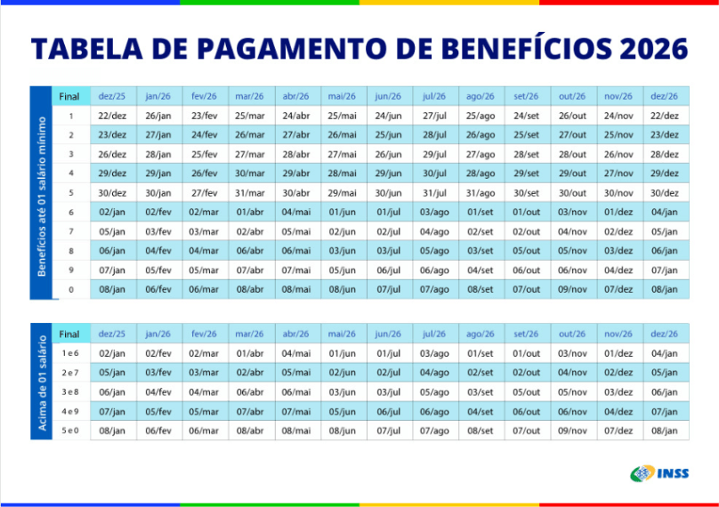 Em 2026, os valores já refletem o novo salário-mínimo e seguem o cronograma conforme o número final do benefício.