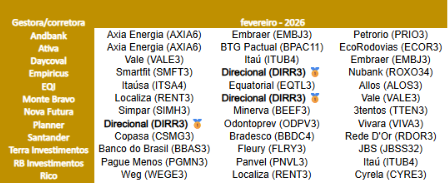 “Vemos a Direcional posicionada para repetir mais um bom desempenho operacional e resultados expressivos em 2026, permitindo a recuperação da ação sobre a queda recente”, afirmou Mariante.