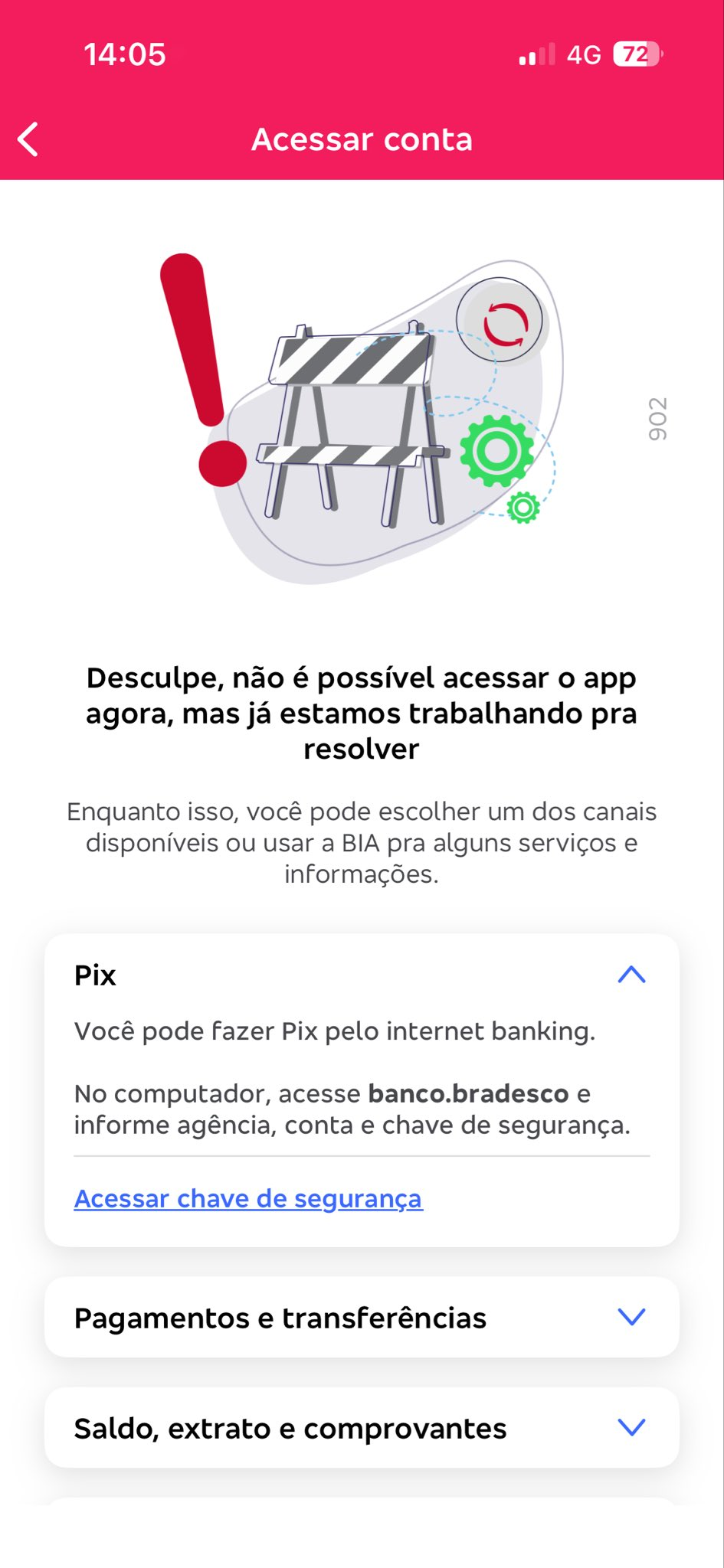 Quem tentou acessar o aplicativo do Bradesco (BBDC4) no início da tarde desta segunda-feira (16) encontrou alguns obstáculos no caminho.