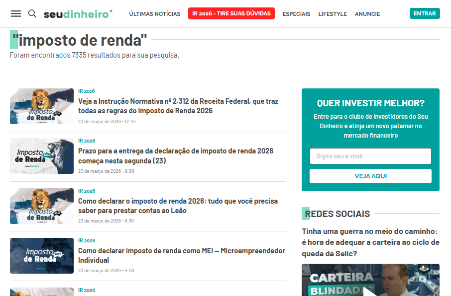 Basta digitar “Imposto de Renda” na nossa homepage para encontrar milhares de matérias, guias e conteúdos aprofundados, que explicam desde as regras básicas até as situações mais específicas da declaração.