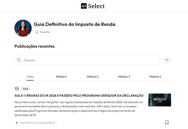 No SD Select, você consegue acessar materiais exclusivos que te conduzem de forma clara na hora de preencher a sua declaração de Imposto de Renda.