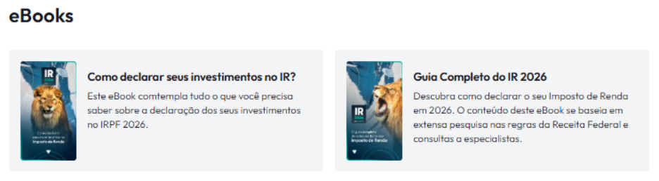 Se você não “curte” muito ficar assistindo videoaulas, mas ao mesmo tempo gosta de conteúdos profundos, o “guia completo de como declarar seu IR” e o e-book sobre “como declarar seus investimentos no IR” são ideais para te ajudar nessa temporada.