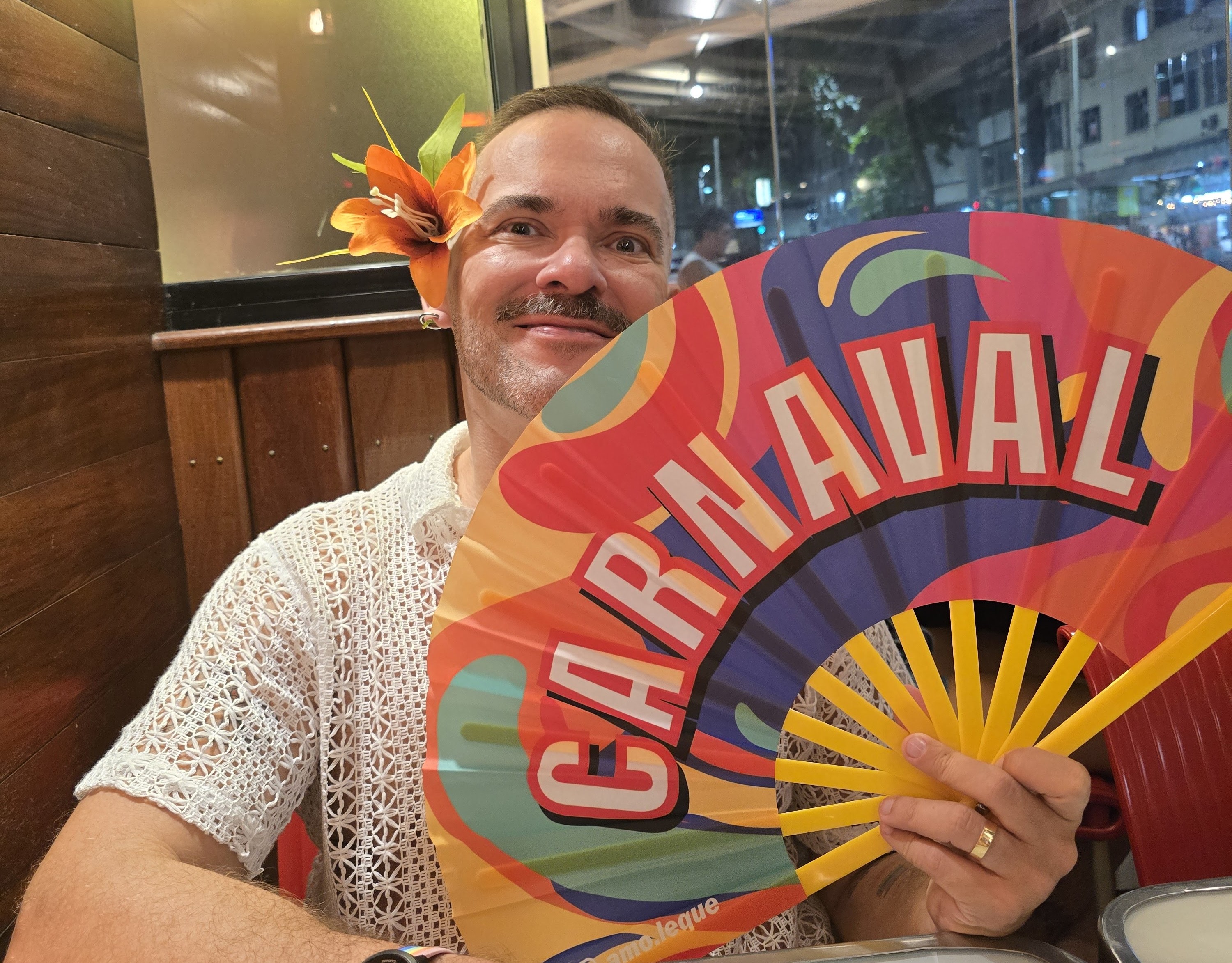 O empreendedor carioca Marcos Cabral Resende, de 52 anos, também viu no Carnaval uma oportunidade de ampliar a renda. O produto escolhido acompanha uma tendência crescente nos blocos de rua e grandes eventos: os leques.